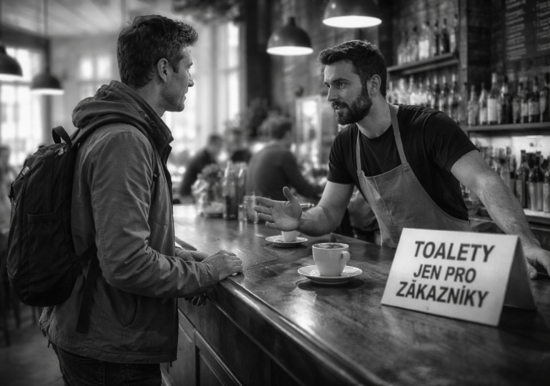 V jedné z kaváren jsem se zeptal, zda si mohu odskočit na toaletu. Odpověď přišla rychle a bez velkého rozmýšlení. „Na záchod? Bez útraty? Na to zapomeňte. Nejsem charita.“ Nebylo to řečeno agresivně, spíš věcně. Jako kdyby šlo o naprosto samozřejmé pravidlo. A vlastně jím také je.